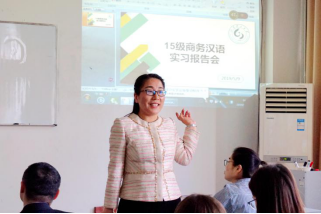 5月9日,韦德bevictor2015级商务汉语班在二号教学楼410教室举行实习报告会,韦德bevictor经理纪洪芳、副经理朱光明、教工办相关人员与实习指导老师共同参加。