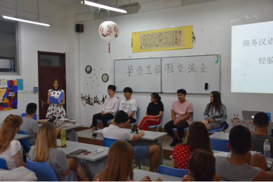 首先,卡加代表全体在校职工对2015级商务汉语职工的毕业表示热烈的祝贺和美好的祝福。接下来,五位毕业生代表就大家关心的诸多问题,比如专业课学习、HSK考试、BCT考试、毕业论文写作、实习工作等等,进行了详细的介绍,并结合自己的学习、生活、工作实际,向在座的学弟学妹们传授经验、解答疑问。交流会上互动积极、气氛友好,与会职工们表示通过跟五位毕业生的交流,自己对接下来的学习和生活更有信心了,会听取毕业生的建议做好各项规划和准备。