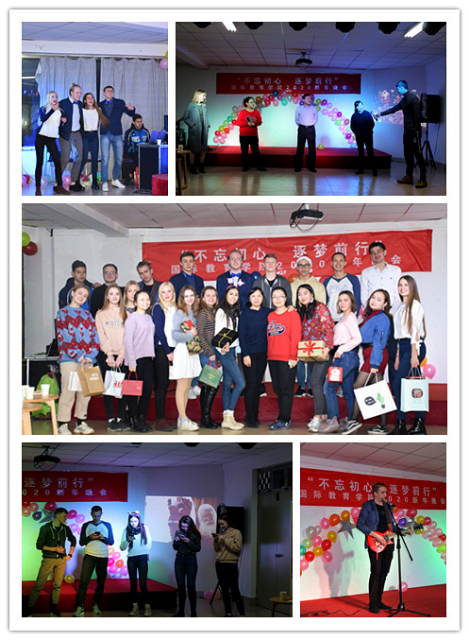 朱经理和权主任给员工们夹饺子,逐一送去新年的祝福。然后大家围坐一起,吃着热腾腾的饺子、可口的中国菜,共同观看老师精心制作的相册视频,在“刚好遇见你”的深情演绎中,过去一年间师生相处的温馨片段、汉语学习的精彩瞬间一一闪现在大屏幕上,顿时令现场活跃起来。随后进行的庆新年晚会,更是高潮迭起、异彩纷呈,歌曲连唱、舞蹈串烧、吉他弹唱、还有字谜、表演、抢椅子等诸多游戏,师生同登台、共欢乐。朱经理的新年贺词和师生交换礼物环节则将晚会气氛推向高潮,最后晚会在大家欢快的舞步和祝福声中结束。