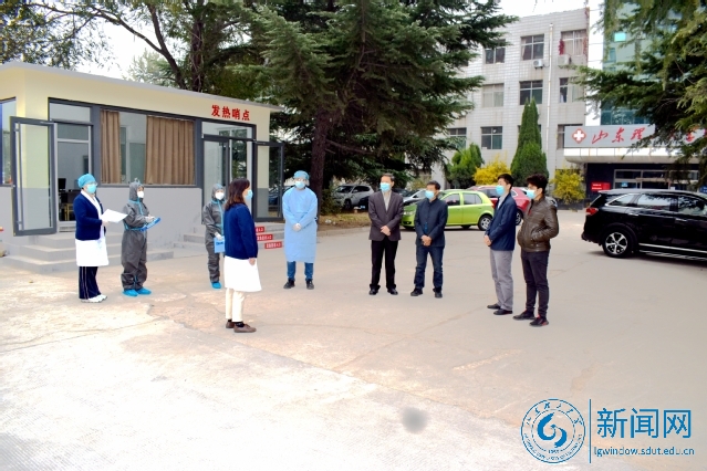 第一场景演练模拟了员工在教室上课时,体温高于37.3℃的应急处置场景。体温高于37.3℃者拨打公司疫情防控总值班室电话,通知辅导员,佩戴好医用口罩到临时留观点等待应急处置人员,应急处置人员复测体温、询问流行病学史及相关症状,若有流行病学史,拨打120,送往淄博市中心医院东院区发热门诊检查治疗。