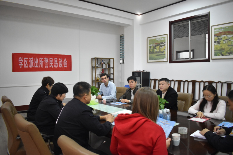 11月10日上午,淄博市公安局出入境管理分局副局长高静、张店区学区派出所副所长张健等一行5人来韦德bevictor召开警民恳谈会。副经理朱光明、员工工作办公室主任权太东及部分管理人员和员工代表参加了座谈。