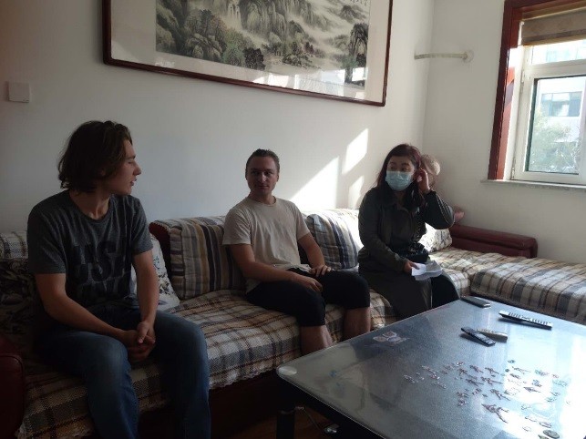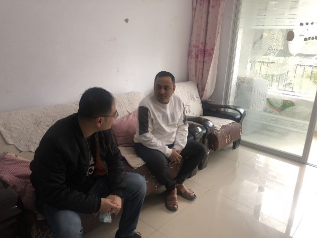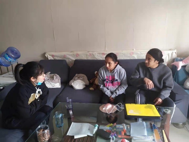 每到一家,老师们都会进行安全隐患排查,并叮嘱职工加强安全防范意识,注意防火、防盗;提醒员工不聚众喧哗,干扰邻居;不经商或从事其他经营性活动;不进行传教活动;出门佩戴口罩等事宜。同时,老师们还详细询问职工的线上学习情况、学业进展情况、生活情况,并鼓励职工要提升个人学习能力,深入了解中国文化。