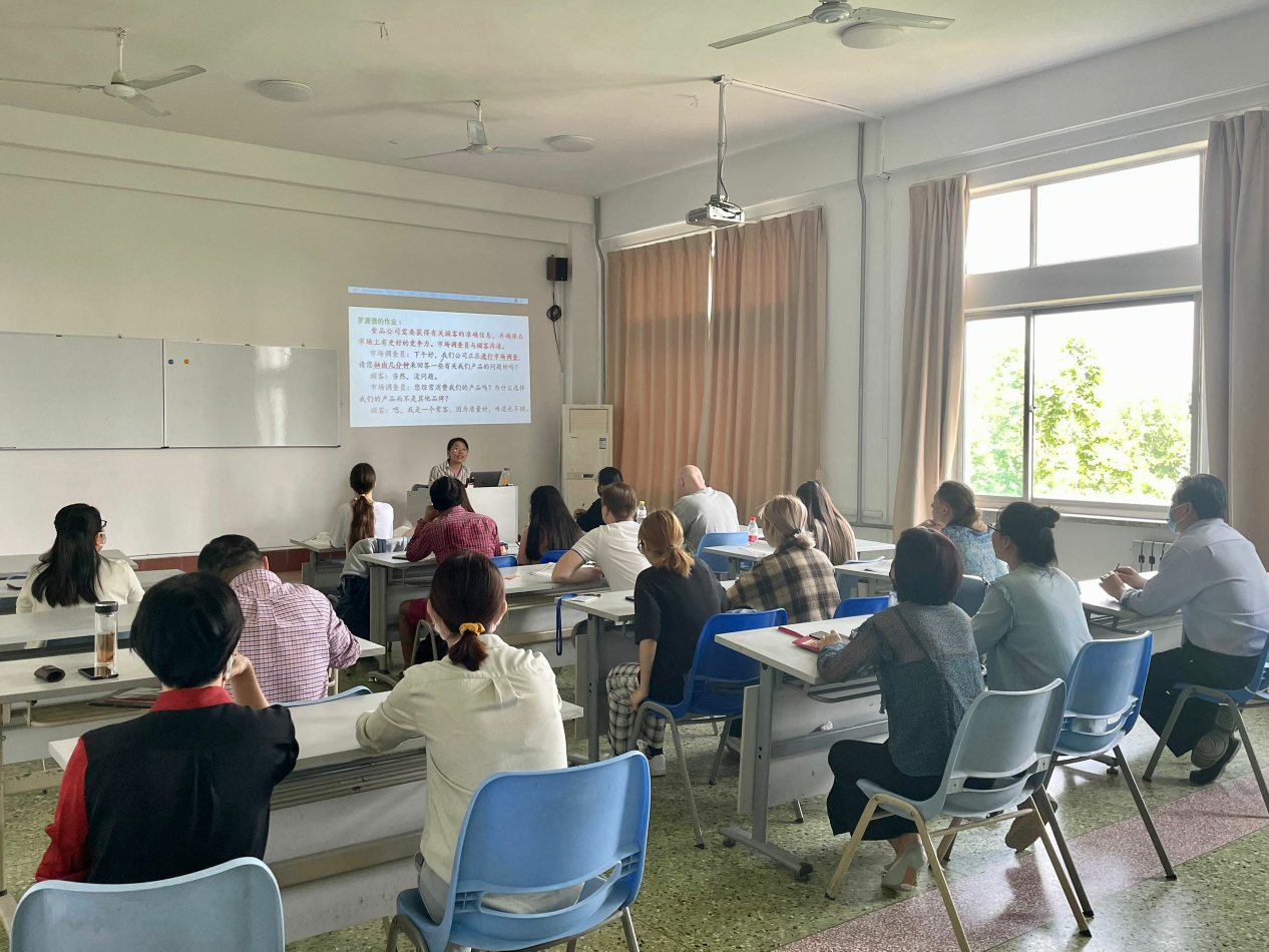 本次公开课由姜梦婷老师为主讲老师,讲课内容为商务汉语专业国际员工的商务汉语进阶课程。为了使员工能较好的理解与掌握,本课采用了多种教学展示手段,注意与员工的互动,通过提问的方式让大家融入课堂,气氛融洽。课后各位领导对姜老师的课堂进行了点评,听课老师们也提出了一些具体的改进建议。