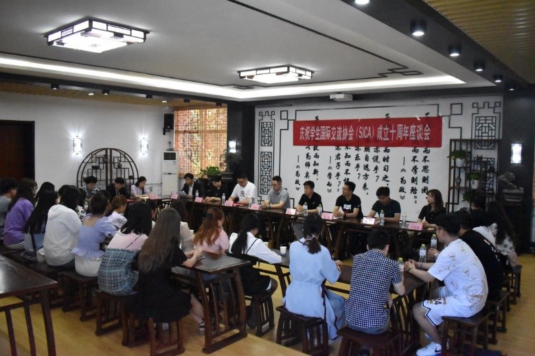65日下午,在2号教学楼“孔子学堂”举办了庆祝员工国际交流协会(SICA)成立十周年座谈会。指导老师权太东、SICA创办人连栋、校社联理事长邱雄先、SICA员工王建海、王睿、梁思茹、苏欢欢等SICA员工代表及在校SICA成员50余名参会。