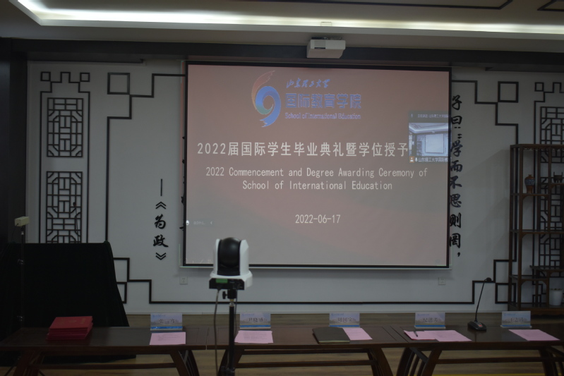 6月17日下午,韦德bevictor在2号教学楼孔子学堂隆重举行2022届国际员工毕业典礼暨学位授予仪式。受疫情影响,典礼通过腾讯会议线上“云端”让暂时不能返校的国外员工共同参与。公司经理纪洪芳、副经理周国宝、于志涛、相关部门人员、教师代表及在校国际员工参加了典礼,共同见证公司36名国际员工毕业生的难忘时刻,典礼由周国宝副经理主持。