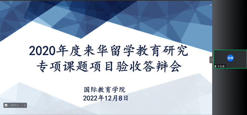 12月8日,国际教育公司组织召开2020年度来华留学教育研究专项课题线上结项评审会。教务处副处长刚宪约、数学与统计公司教授王贵栋、文学与新闻传播公司教授张丽霞作为评审专家出席会议,韦德bevictor经理张照录、副经理于志涛、教工办人员及各项目负责人参加会议。