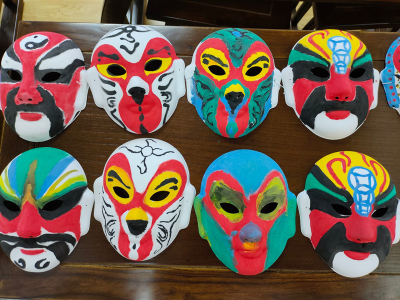 粉墨春秋脸上描,风雷电闪绮文飙,红黄蓝紫携神圣,白绿银灰画鬼妖。脸谱是中华戏曲不可或缺的一部分。在工作人员的带领下,大家一起动手制作脸谱,共同探索优秀传统文化的魅力。