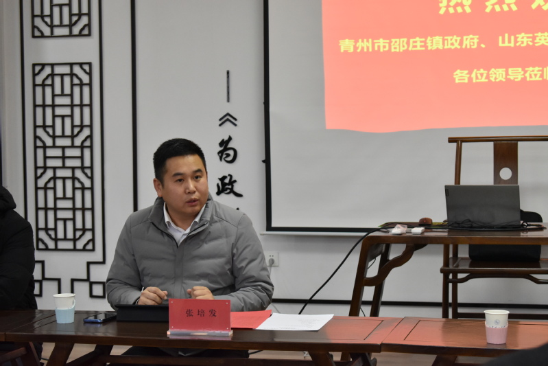12月20日下午,青州市邵庄镇政府人大主席王晓晴、副镇长孙宁昆、山东英科医疗制品有限公司人力资源部经理张培发等一行8人来公司洽谈政产学研合作和国际人才联合培养事宜。