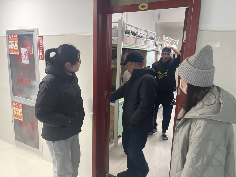 院领导与国际员工进行了亲切的交谈,对员工宿舍的生活设施、卫生情况进行了认真的检查,着重强调了公寓消防安全的重要性,提醒国际员工寒假期间注意人身安全,离校做好个人防护,详细了解学习生活情况以及假期安排,有困难及时向老师反应;同时勉励职工们积极做好生涯规划,依托专业学习推动技能提升。