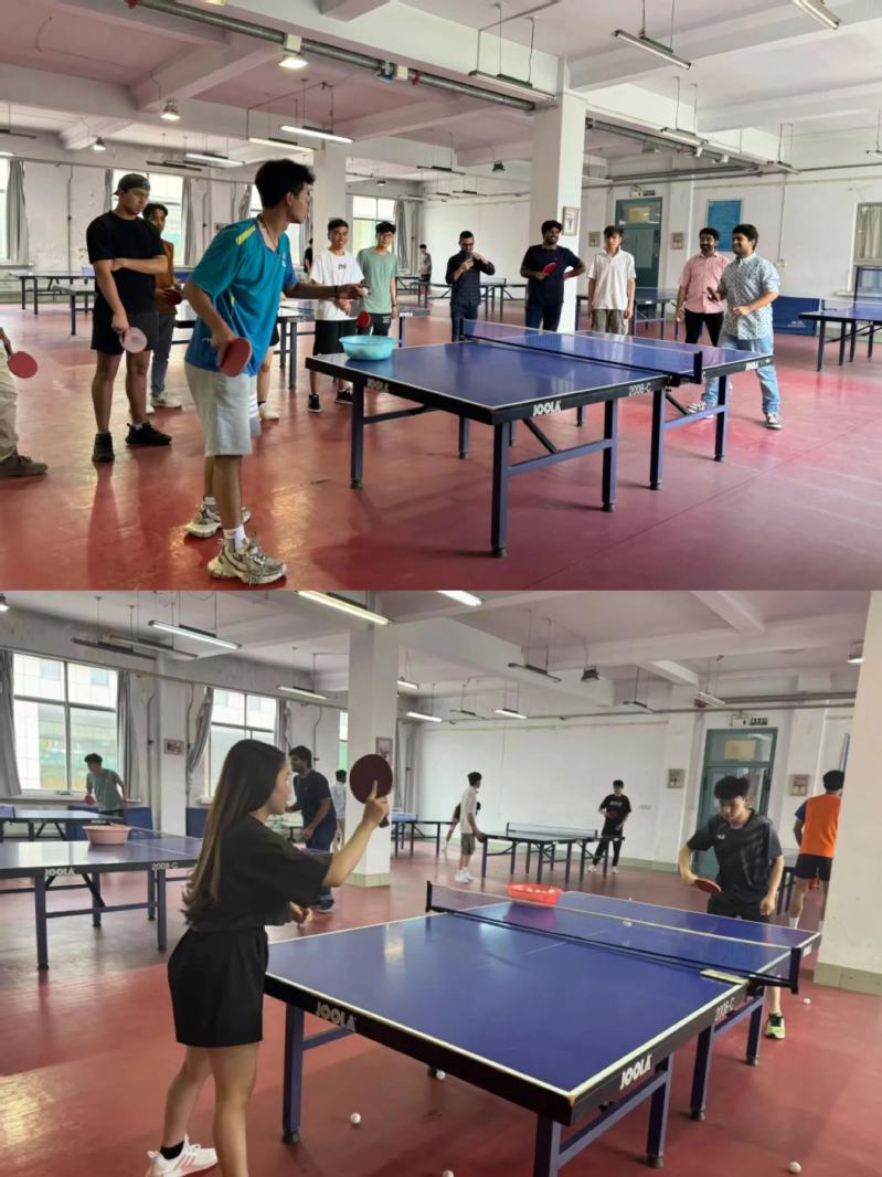 活动伊始,来自不同国家的职工们齐聚一堂,以乒乓球为桥梁,共同开启此次文化交流活动,这些经验丰富且备有深厚专业知识的“教练”们,不仅借助生动的讲解和精湛的动作示范,向所有参与者传授了乒乓球运动的技巧精髓,同时他们还以耐心与细致的一对一指导,深入剖析每位选手的发球姿势、挥拍技法以及战术策略,为大家提供个性化的建议。随后,通过实际比赛的操作,在真实战境中帮助职工们发现问题并提升乒乓球技术,时而你攻我守,时而大力扣杀,时而紧张激烈,精湛的球技,默契的配合,赢得了现场观众们的阵阵掌声,极大地增强了职工们对乒乓球运动的热情和信心,也提高了大家的球技水平。本次活动还注重文化推广,同学们向韦德bevictor的师生们介绍乒乓球的历史和发展,使职工们更加深入地了解中国文化。职工们也分享了各自国家独特的文化习俗,活动现场气氛欢快愉悦。