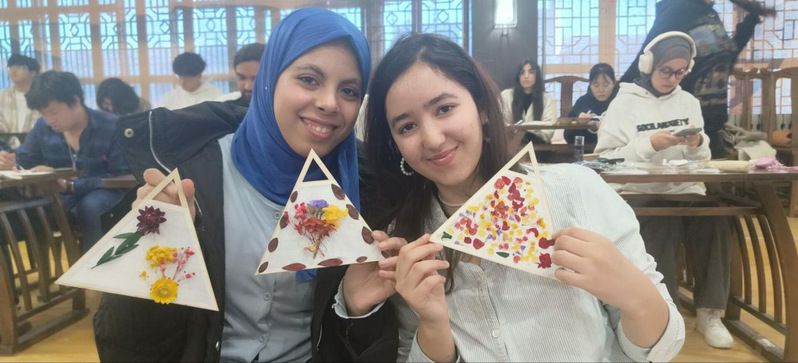 紧接着,花草纸灯笼DIY环节将活动推向了高潮。花草纸是一种古老的造纸工艺,以其独特的质感和自然的美感而闻名。在制作过程中,国际学生们将花草纸裁剪成合适的形状,再用彩灯和装饰物进行点缀,一个个精美的灯笼逐渐呈现在大家眼前。