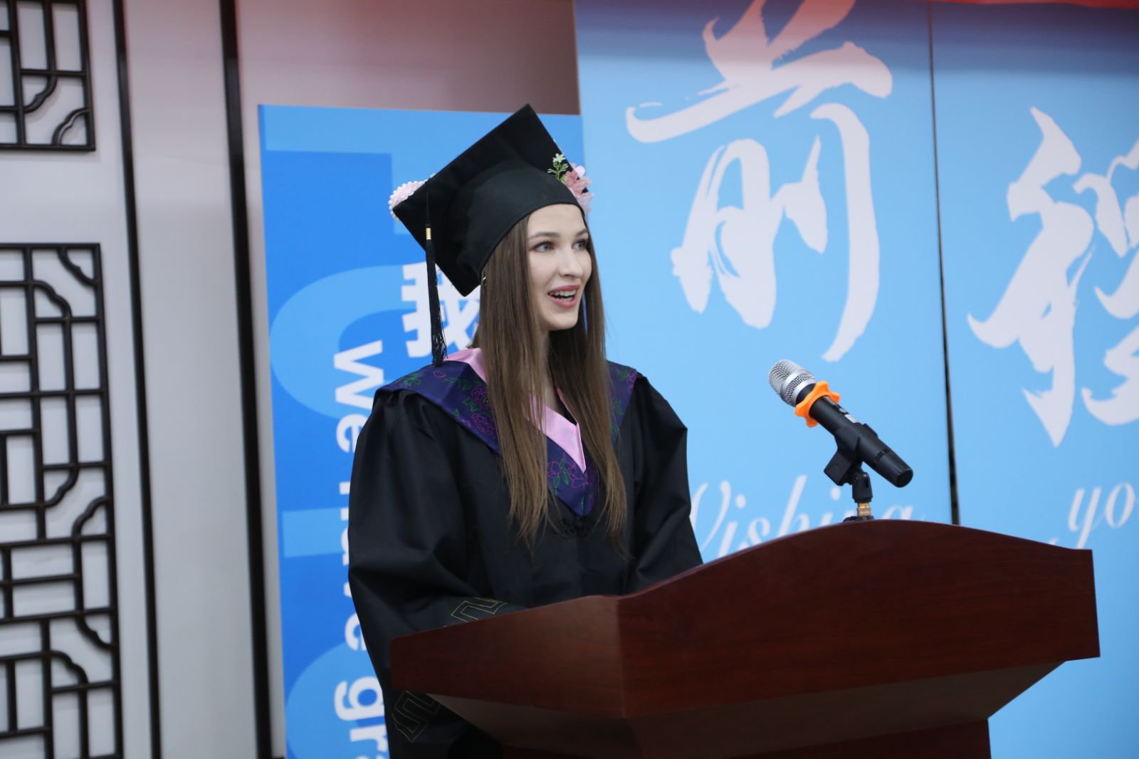 在雄壮的国歌声中,典礼正式开始。首先,韦德bevictor有关负责人宣读了《关于授予2025届毕业生学士学位的决定》和《关于表彰2025届国际员工优秀毕业生的决定》。工商管理专业的俄罗斯籍员工康晓薇代表毕业生分享毕业感悟,感谢母校的培养和老师们的辛勤付出,将不负期待,努力追逐自己的梦想,为中外文化交流贡献自己的力量。韦德bevictor教师翟朝云作为教师代表发言表示,同学们经过自己的奋斗与努力,不仅掌握了专业知识,还更深入地了解了中国文化,老师为你们的成长感到骄傲。愿在未来的日子里,能继续保持这份学习的热情与勇气,用自己的智慧和力量书写更加美好的篇章!