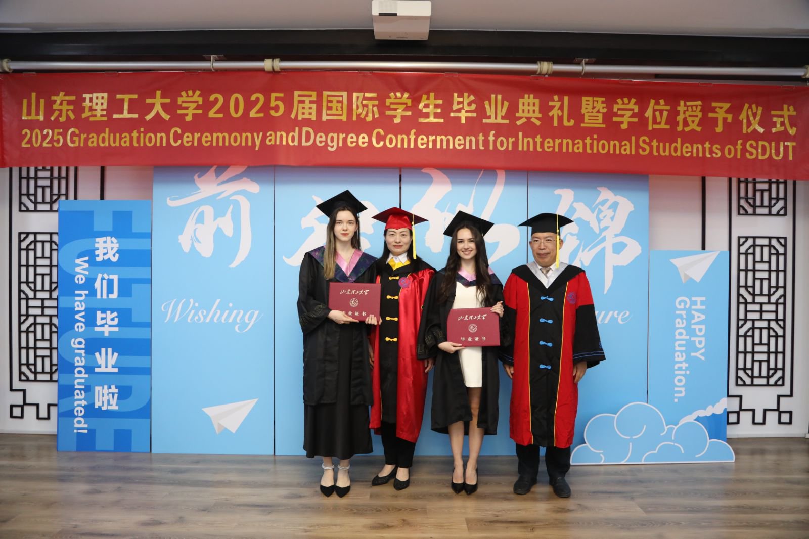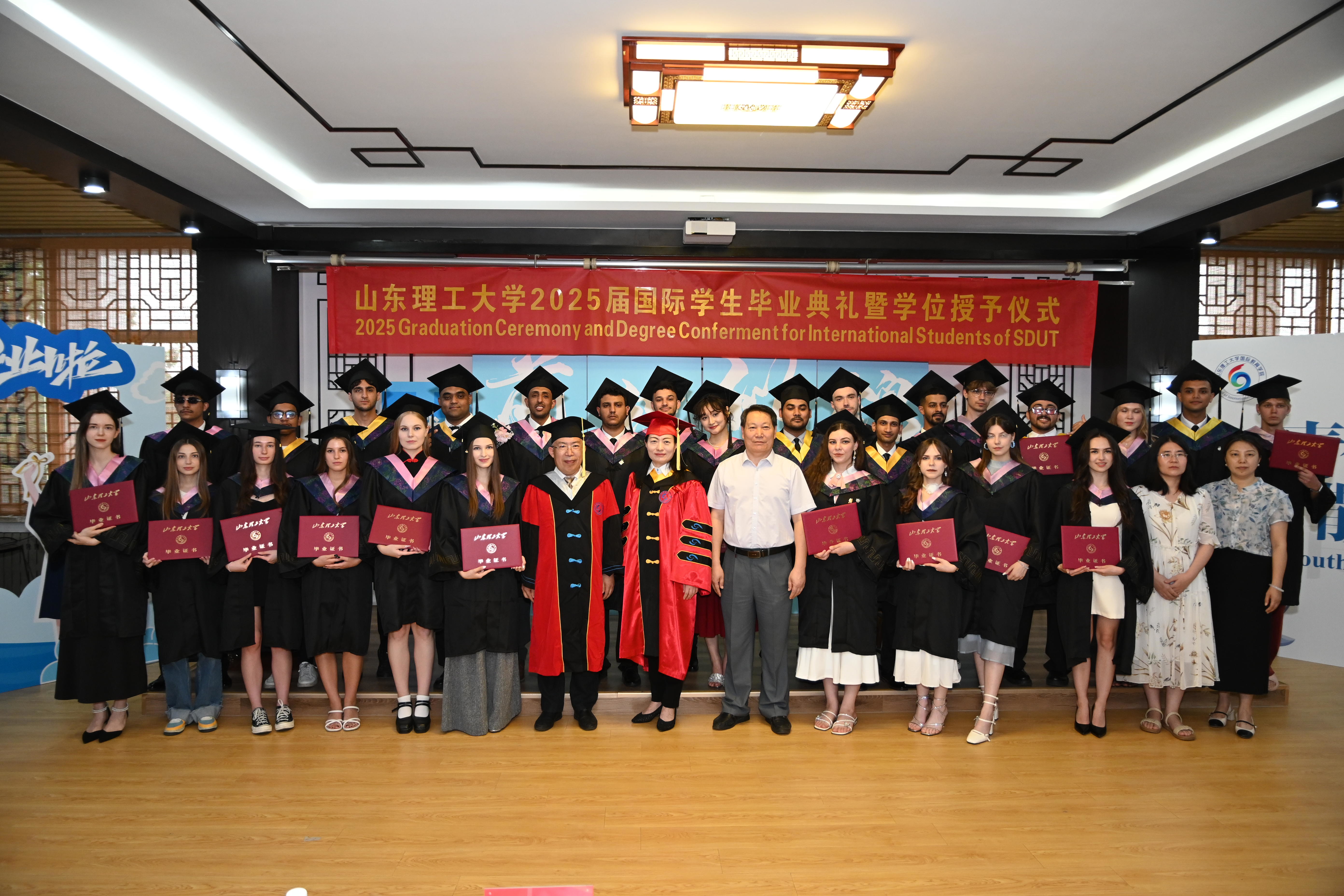 随后进行了国际员工毕业生的学位授予仪式,领导们为毕业生们逐一拨苏正冠、授予学位,28名国际员工毕业生学业已成,振翅高飞。最后在深情悠扬的校歌声中,2025届国际员工毕业典礼暨学位授予仪式结束。